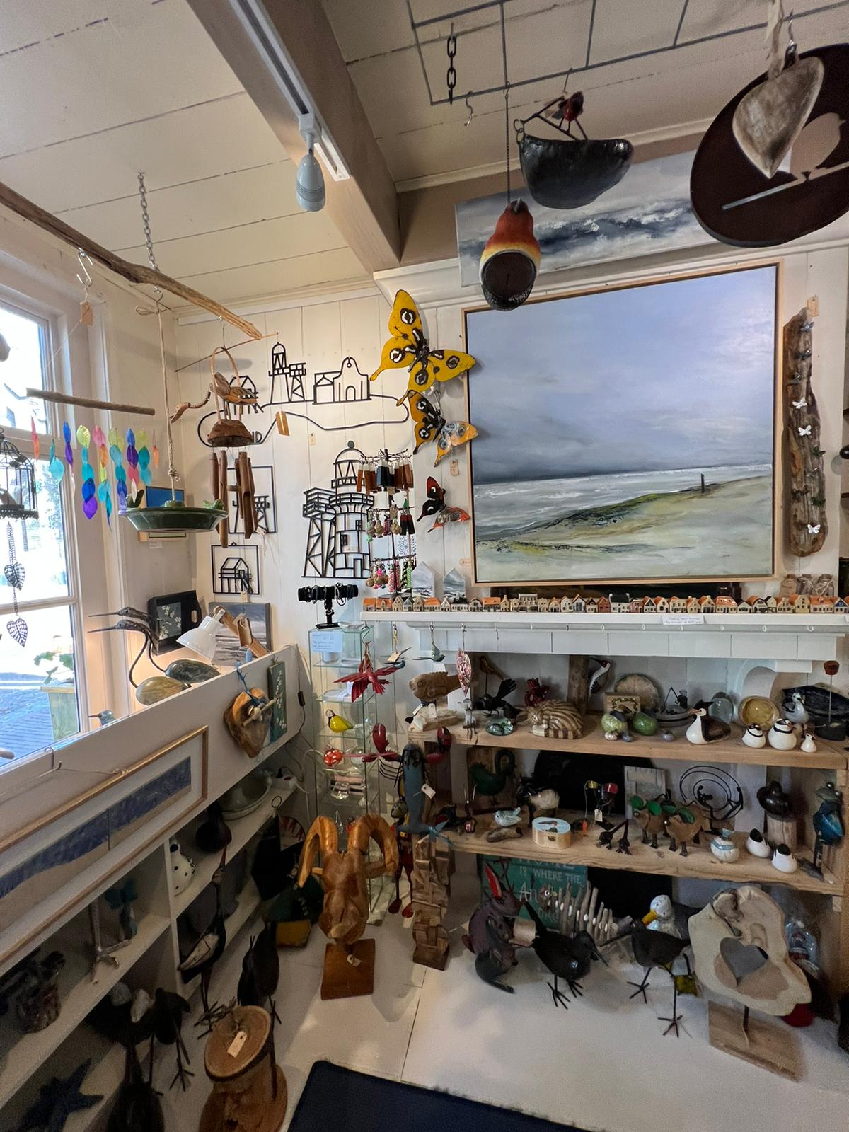 Leuke kleine winkel/galerie waar 'kunst met de grote en kleine K' wordt verkocht, gemaakt door en voor Vlielanders & Vlielandgangers.